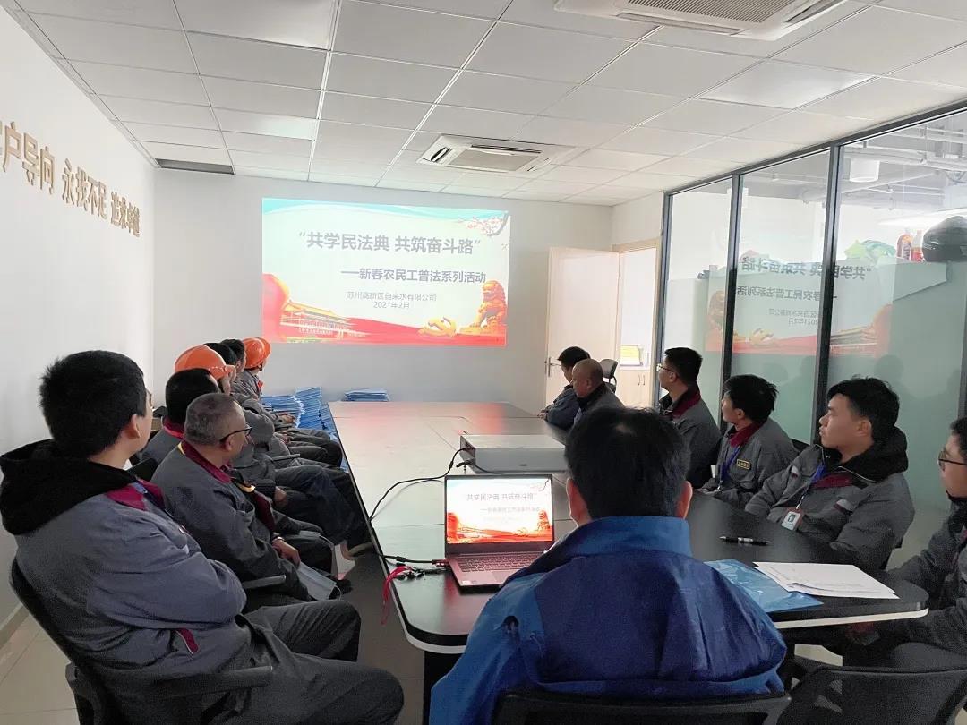 为帮助农民工朋友学好用好民法典这部“社会生活的百科全书”,进一步提升大家依法办事的意识和能力,增强其创造美好生活的获得感、幸福感和安全感。近期,新区自来水公司围绕“共学民法典 共筑奋斗路”主题,开展了形式多样的法治宣传教育活动,使农民工朋友在春节期间实实在在地感受到了法治阳光。