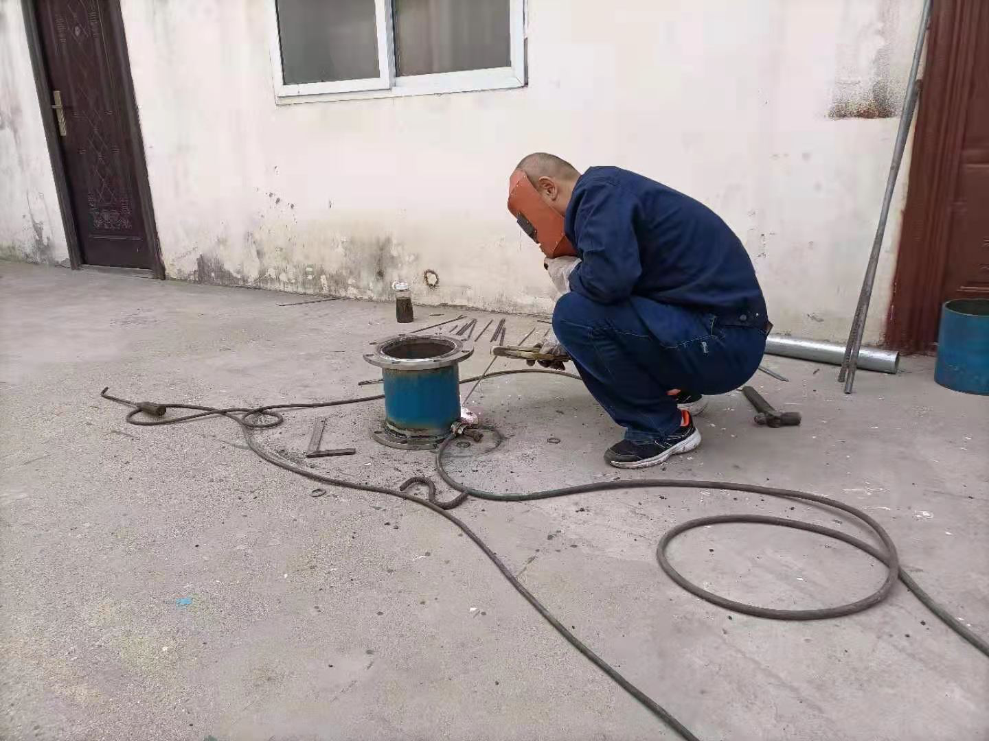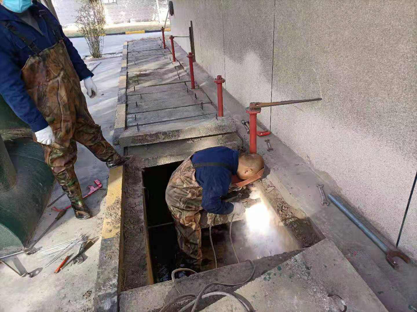 节后第一天上班,供水公司生产设备部维修班的骨干们就一头扎进周庄水厂,他们要对一期反应沉淀池关闭不严的排泥阀进行革新改造。周庄水厂是我市的主供水厂,为市区供水立下了汗马功劳。一期供水设备投入使用时间更长,一期反应沉淀池底部沉淀的污泥需要定期从排泥阀排出,排泥阀长期处于压力大、工作环境恶劣的状态下,七个排泥阀不同程度出现了关闭不严的情况。生产设备部维修班的能工巧匠们得知这一情况,对老化失灵的排泥阀进行了仔细研究,当时安装的排泥阀是蝶阀,嵌在沉淀池壁上,拆卸困难且蝶板摩擦严重无法维修,只有整体更换新阀。然而,拆卸旧阀门困难重重,需破拆沉淀池的部分墙体,不仅影响范围大,而且不安全。于是他们就想出把原来的排泥阀蝶板全部打开,让排泥阀当成短管用,在阀门外面重新加装一截焊装法兰盘的短管与新蝶阀连接。针对新安装的排泥阀处于地下排污沟内,开启不便,他们就想出把蝶阀阀杆上的手轮去掉,直接在阀杆上焊上一米多长镀锌管,把阀杆加长,高出地面几十公分,又在加长的阀杆顶部横开贯通孔,工作人员开启阀门时只需把一截短钢筋插入贯通孔中当力臂,开启方便省力。