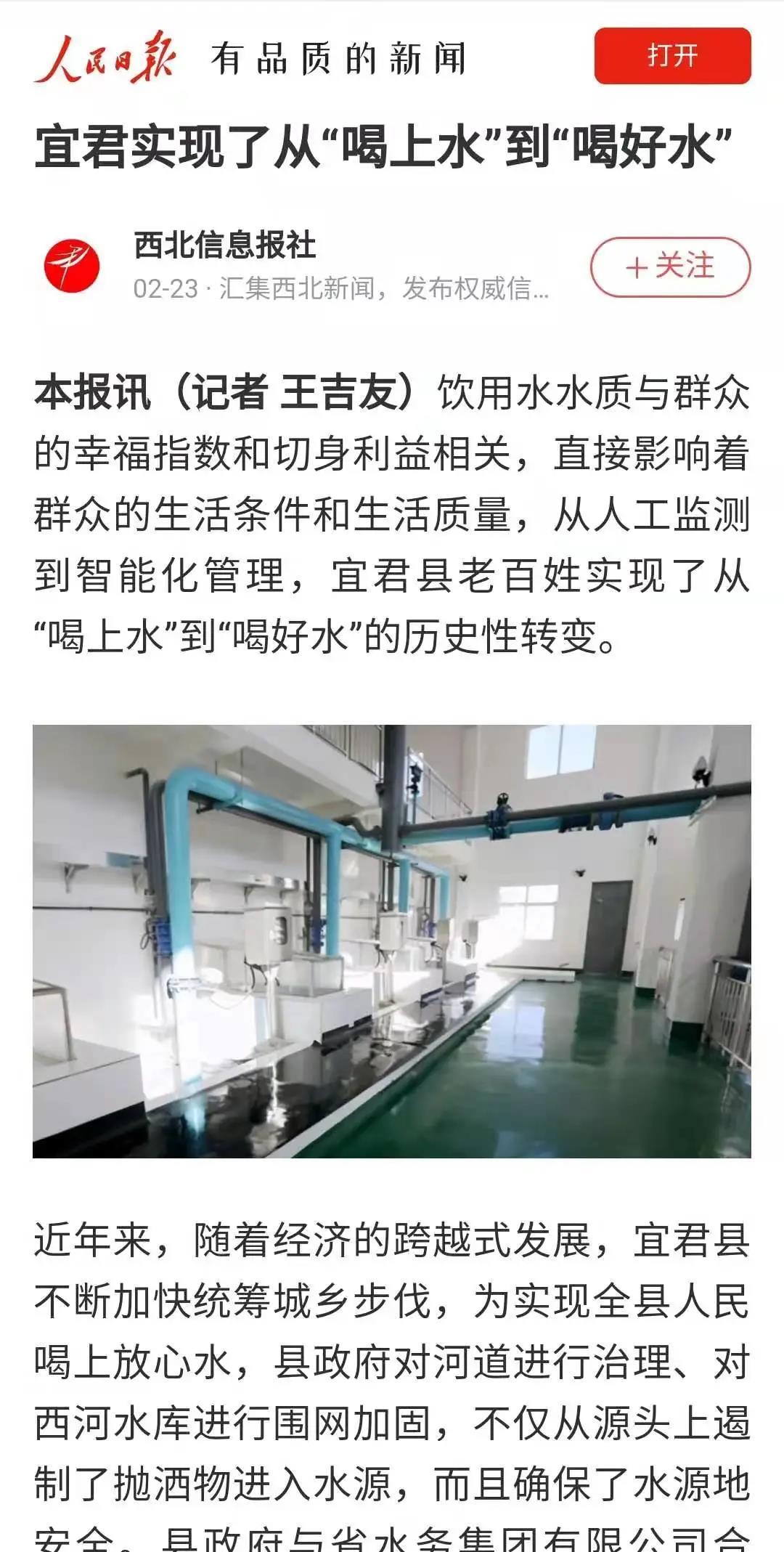 人民日报:宜君实现了从“喝上水”到“喝好水”
