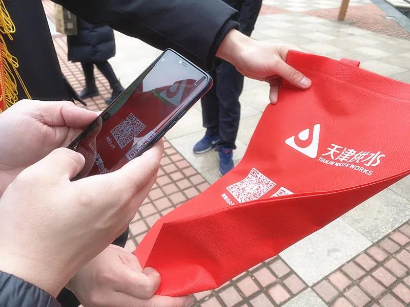 在咨询台前,志愿者们还通过赠送印有“二维码”可回收利用的环保袋来活跃气氛,手把手教大家操作关注“天津水务集团”“天津市自来水集团有限公司”“天津华澄”微信公众号,方便实时查看天津供水服务动态信息,了解微信、支付宝等多种灵活缴费方式,减少居民为交水费“来回跑”的情况。