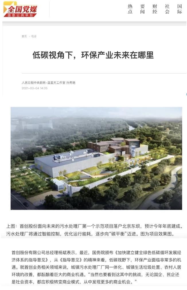 布局碳中和 首创股份有话说