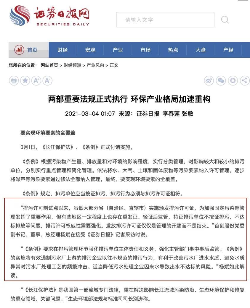 针对排污许可,首创股份在接受《证劵日报》采访时指出,排污许可制试点以来,虽然大部分省(自治区、直辖市)实施颁发排污许可证,为加强固定污染源管理发挥了重要作用,但有些地区一定程度上也存在重发证、轻证后监管,持证排污单位不按证排污、不达标排放等问题,排污许可权威性需要强化。发放排污许可证仅仅是管理的开端而不是结束。