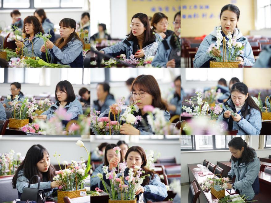 一个花篮一个风格,透过插花表达自己独特的心境和情感,传递女职工们对健康生活、幸福人生的追求与向往。大家手捧着自己的鲜花作品,脸上洋溢着幸福的笑容。