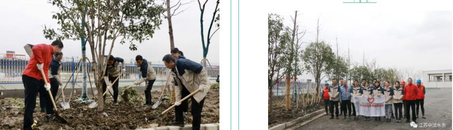 3月9日,江苏中法水务志愿者们开展“建设美丽厂区,共创绿色家园”植树活动,为城东水质净化厂增添一抹新绿。
