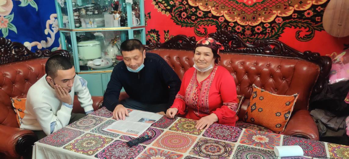 看到亲戚给自己准备了这么特殊的"礼物”,尹胜勇的亲戚图尼沙姑·肉孜十分高兴,她不但自己学习,还把儿子叫上一起学习,学习时,谈到自己的感受说:“我的亲戚对我很好,给我送党报,还带着我们一起学党报,有些汉字我还不太认识,亲戚耐心的给我讲解,我也通过党报学习国家通用语言文字,汉话也说的越来越标准了,这真的是我收到的最好的礼物”。