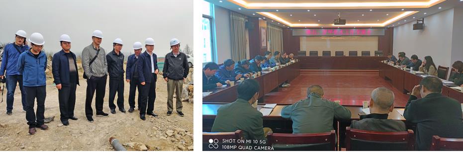 一行人在公司董事长杨繁林、总经理王启平、技术总工唐松及相关工作人员陪同下,实地查看了第二自来水厂改扩建工程厂区、提升泵站、源水管线等工地。