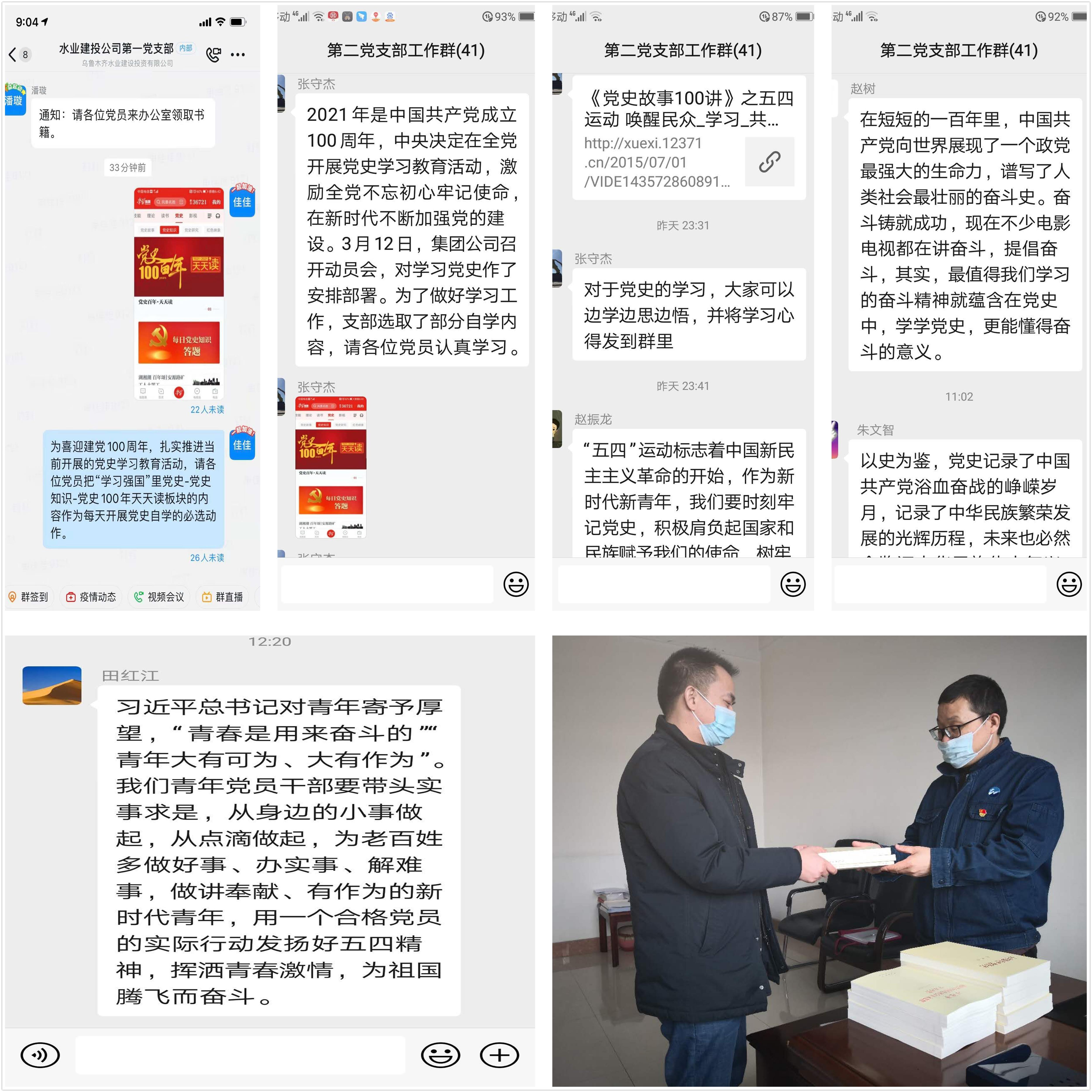 乌鲁木齐水业建设投资有限公司党总支要求各支部党员以学习强国平台——“党史百年天天读”“每日党史知识答题”板块,作为每天自学必选内容。同时,党支部计划借助“共产党员网”党史学习教育专题中《党史故事100讲》《抗美援朝保家卫国》《延安岁月》等影像节目,增强学习的丰富性。3月15日下午,支部书记给党员们发放了学习书籍,并将自学内容链接发到支部群,大家学习后纷纷表达说,最值得我们学习的奋斗精神就蕴含在党史中,学习党史,更能懂得奋斗的意义。