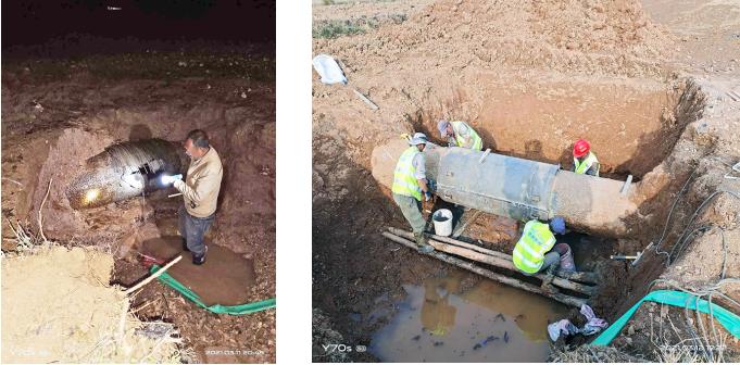 为最大限度的减少水资源浪费,确保城市“生命线”畅通,曲靖滇池水务公司立即安排人员奔赴现场全力抢修。经过挖掘机2个多小时的开挖后,爆管情况终于确定:预应力砼管冷拔丝断裂30根,烈度长1.8米。