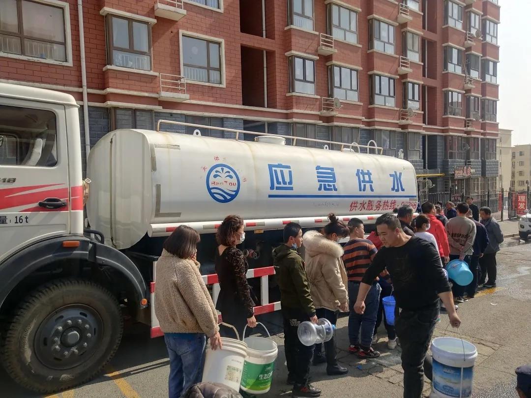 另一边,“水来了!”随着一声吆喝,奥宇新城、北梁新区北一区等小区的居民及周边用户拎着水桶纷纷围向送水车,供水公司志愿服务队成员一边维护现场秩序,一边帮着群众接水,整个接水过程井然有序。面对老人、妇女等需要帮助的用户,志愿服务队员你伸把手、我搭把力,一起帮忙给居民接水送水,确保用户都能用到清澈的自来水,看着为用户忙碌的供水人,现场居民无不由衷地表示感谢。3月17日,居民代表和物业公司将印有“心系百姓 为民服务”的锦旗送到了供水公司,充分肯定了供水公司为民服务,勇做用户守护者的精神。