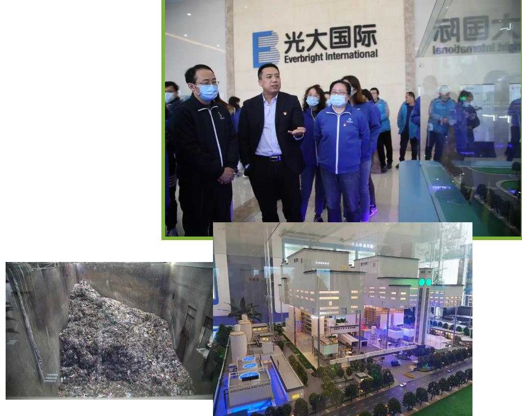走进光大常高新环保能源有限公司,党员们了解到常州有40%的生活垃圾都在这里进行处理,日处理生活垃圾可达1500吨。党员们参观了垃圾回收焚烧利用的工艺流程,了解生活中垃圾的来源、垃圾分类、垃圾的处理及回收利用。“距离这么多垃圾一步之遥,却闻不到一丁点臭味”“一吨垃圾焚烧可以发近400度电,资源循环利用,太环保了!” ——光大常高新环保能源有限公司的干净环保以及现代化的工艺给党员们留下了深刻印象。