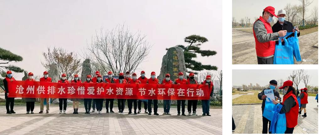 沧州供排水集团青年志愿者到沧州市大运河公园开展 “珍惜爱护水资源 节水环保在行动”主题节水宣传活动,为市民讲解节水护水知识,发放节水宣传册、供水服务满意度调查问卷、便民挪车卡等宣传品,帮助环卫工们捡拾垃圾。并通过微信公众号组织开展“珍惜水、爱护水”有奖答题活动,提高公众珍惜水、爱护水、节约水的自觉性,让更多人成为节约用水、保护水环境的传播者和践行者,为建设节水型社会贡献力量。