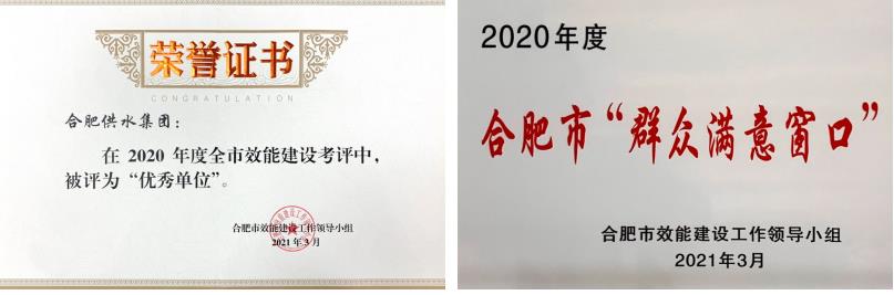 3月26日,从市效能办获悉,合肥供水集团获评2020年度全市公用企事业单位效能建设“优秀单位”(第二名),供水营业大厅在全市窗口评议中名列第一。