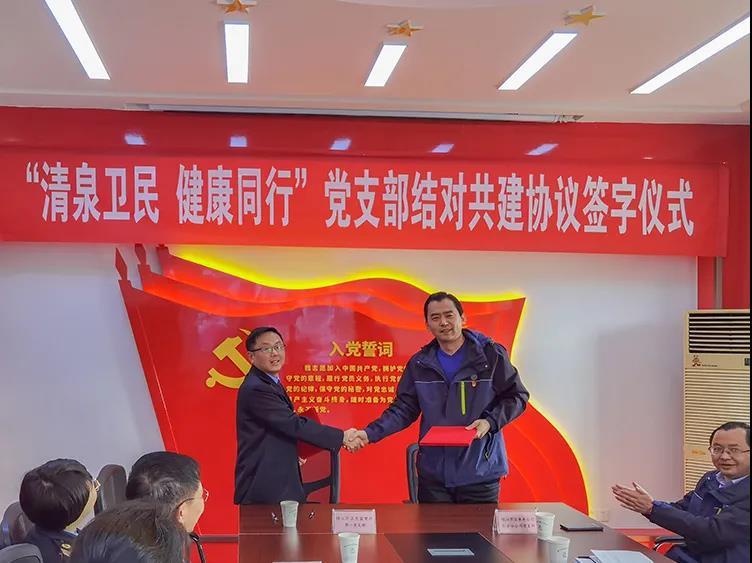 为发挥党建引领作用,增进基层党组织的凝聚力、战斗力和服务功能,切实加强党组织之间的学习借鉴和经验交流,我公司制水分公司党支部与市卫生监督所第一党支部结合“清泉+”“蓝精零·卫民健康”党建文化品牌,联合开展“清泉卫民 健康同行”主题结对共建活动。