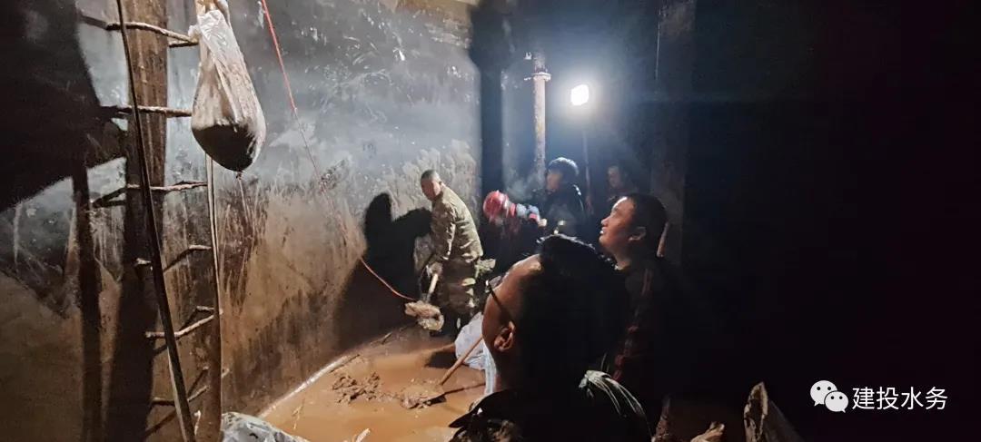 经过大家一天共同努力,华灯初上时分,河东热备水厂蓄水池积沙完全清理干净,经过消毒处理后,开始蓄水投入供水运行。