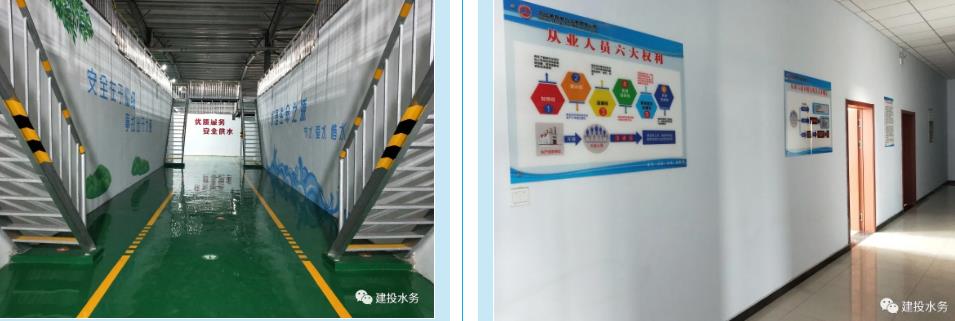 在高新区水厂“7S”施工中,针对生产现场环境进行全局综合考虑,总结、归纳安全生产双控工作要点,制订切实可行的工作计划与措施,完成车间内目视化管理基础上,又在有限空间目视化管理环节制作了黄黑警示带和井盖标识120处,制作彩绘文化墙29块,安装安全生产警示牌52块、双控标识展板40块,利用文化墙宣传“认真辨识评估风险、全员参与排查隐患、加强安全隐患治理、安全风险分级管控、全面落实教育培训、严格遵守操作规程”,以职工喜闻乐见、通俗易懂的形式,在职工生产生活中起到了警示作用,真正做到了“关口前移、源头管控、预防为主、综合治理”,以相对较少的费用,取得了更好的效果,使所有员工对本岗位安全生产工作目标有了更深刻理解和更清晰认识。