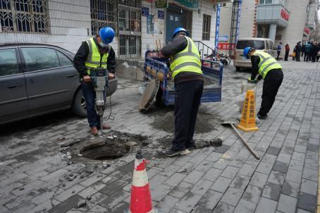 新疆沙湾供排水公司现场负责人宋建忠说,由于大多数上下水检查井设置在机动车道和人行道上,过往行人、车辆较多,为缩短维修时间,工作人员对上下水检查井、井盖同时进行维修,首先将塌陷检查井周围进行破拆清理,取出下陷井盖,将井室上沿重新进行平整,然后换上新的井盖,并用水泥砂浆对井盖四周进行加固,保证井盖和路面在同一平面,使供水井盖更加牢固安全。