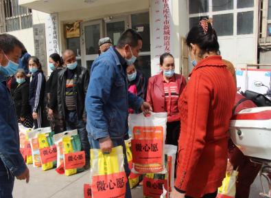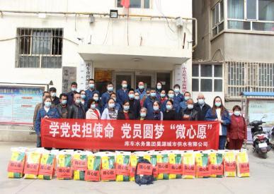 2021年4月8日,新疆库车水务集团昊源城市供水有限公司联合新城街道友谊路社区开展“学党史担使命,党员圆梦‘微心愿’”主题党日活动,为辖区18户居民送上了米和面。