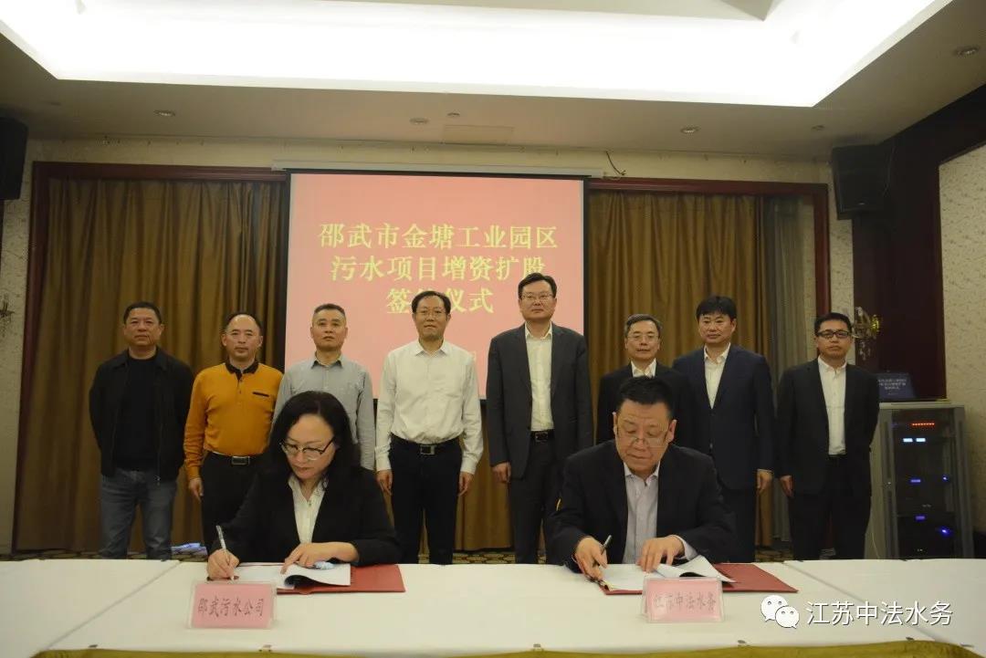 江苏中法水务签署新项目为邵武市金塘工业园提供污水处理服务