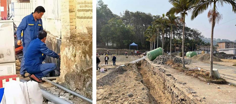 公司于4月9-10日,派出最优秀的业务骨干赶赴原沙坝糖厂建设点,通过实地勘察,制定出快速、简便的通水管道接通方案。在时间紧、任务重的情况下,公司职工充分发扬吃苦耐劳、团结协作、务实高效的工作作风,第一时间完成了临时隔离点建设的通水保障工作。