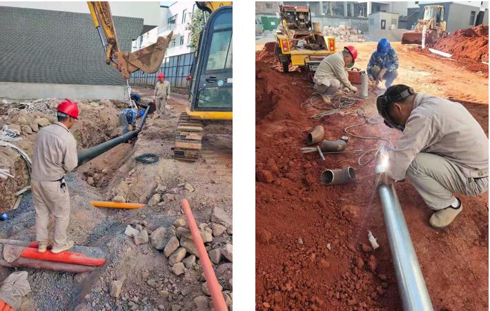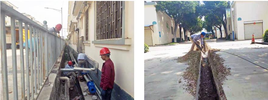 4月初,进行路面开挖,DN50镀锌管、DN100球墨铸管安装,认真践行为老百姓办实事的承诺,切实解决了用户用水难题;