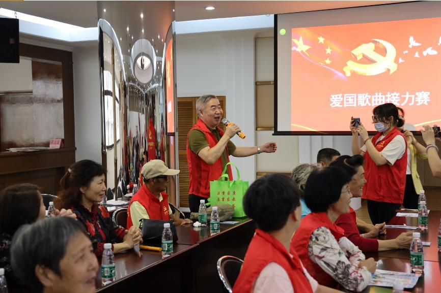 在爱国歌曲接力赛环节,党员同志们积极参与,现场洋溢着歌声、掌声、欢笑声,高潮迭出,气氛热烈。雄浑磅礴的国歌、铿锵有力的《军中绿花》、热情激昂的《东方红》、旋律清新的《我爱北京天安门》、悠扬深情的《我和我的祖国》等一首首红色经典曲目在现场回荡,营造了传唱红色经典的浓厚氛围,让大家感受到了爱党爱国的使命感,增强了党员同志间的凝聚力和向心力。