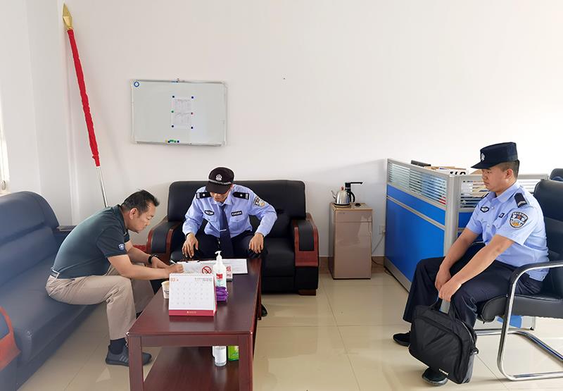在蔡锐副总经理的陪同下,治安大队民警检查了日常的门卫登记台账、安保人员的证件以及配备的安保装备、监控设备的使用情况等相关防控反恐台账资料。