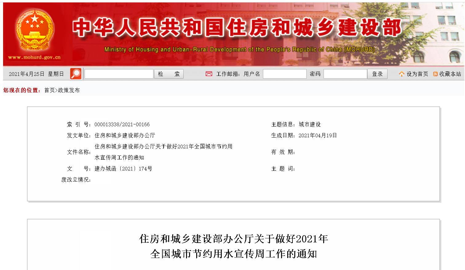 住房和城乡建设部办公厅关于做好2021年 全国城市节约用水宣传周工作的通知