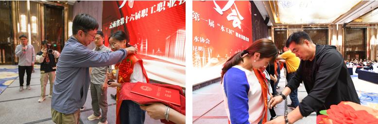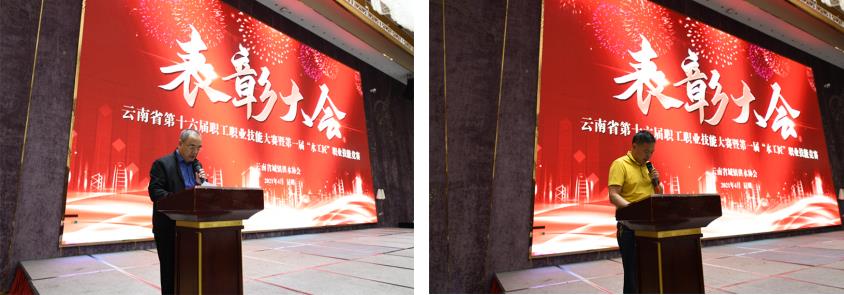 颁奖仪式由省水协副秘书长陈曦主持。省水协副会长曹永奇宣读了云南省职工经济技术创新工程领导小组《关于授予云南省第十六届职工职业技能大赛技术状元和技术能手称号的决定》,省水协副会长郭俊峰宣读了省总工会《关于授予郭为华等85名同志云南省五一劳动奖章的决定》。
