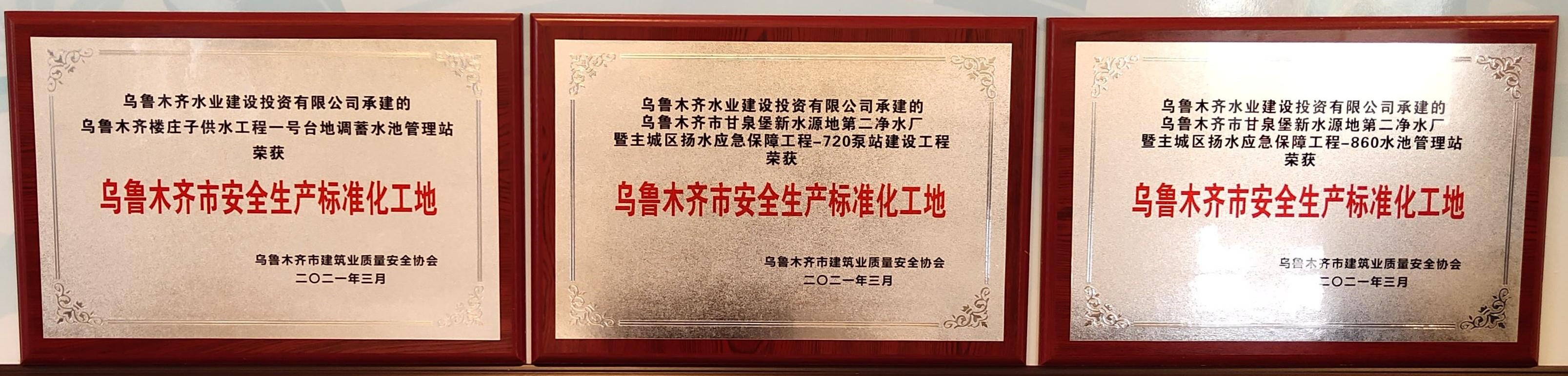 近日,乌鲁木齐水业建设投资有限公司承建的集团公司重点工程甘泉堡扬水应急保障工程-720泵站、860水池管理站和楼庄子供水工程一号台地调蓄水池管理站,荣获乌鲁木齐市建筑业质量安全协会授予的乌鲁木齐市安全生产标准化工地。