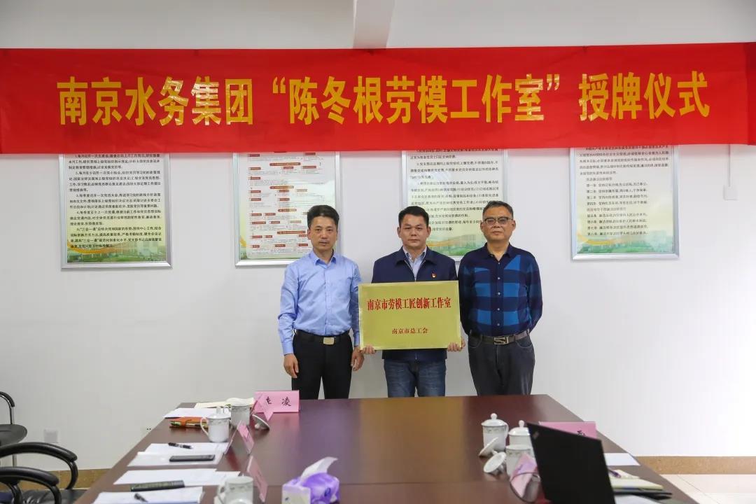 在双方讨论结束后,集团党委副书记朱继国,集团副总经理张冬为陈冬根颁授予了由市总工会颁发的“南京市劳模工匠创新工作室”称号铜牌。