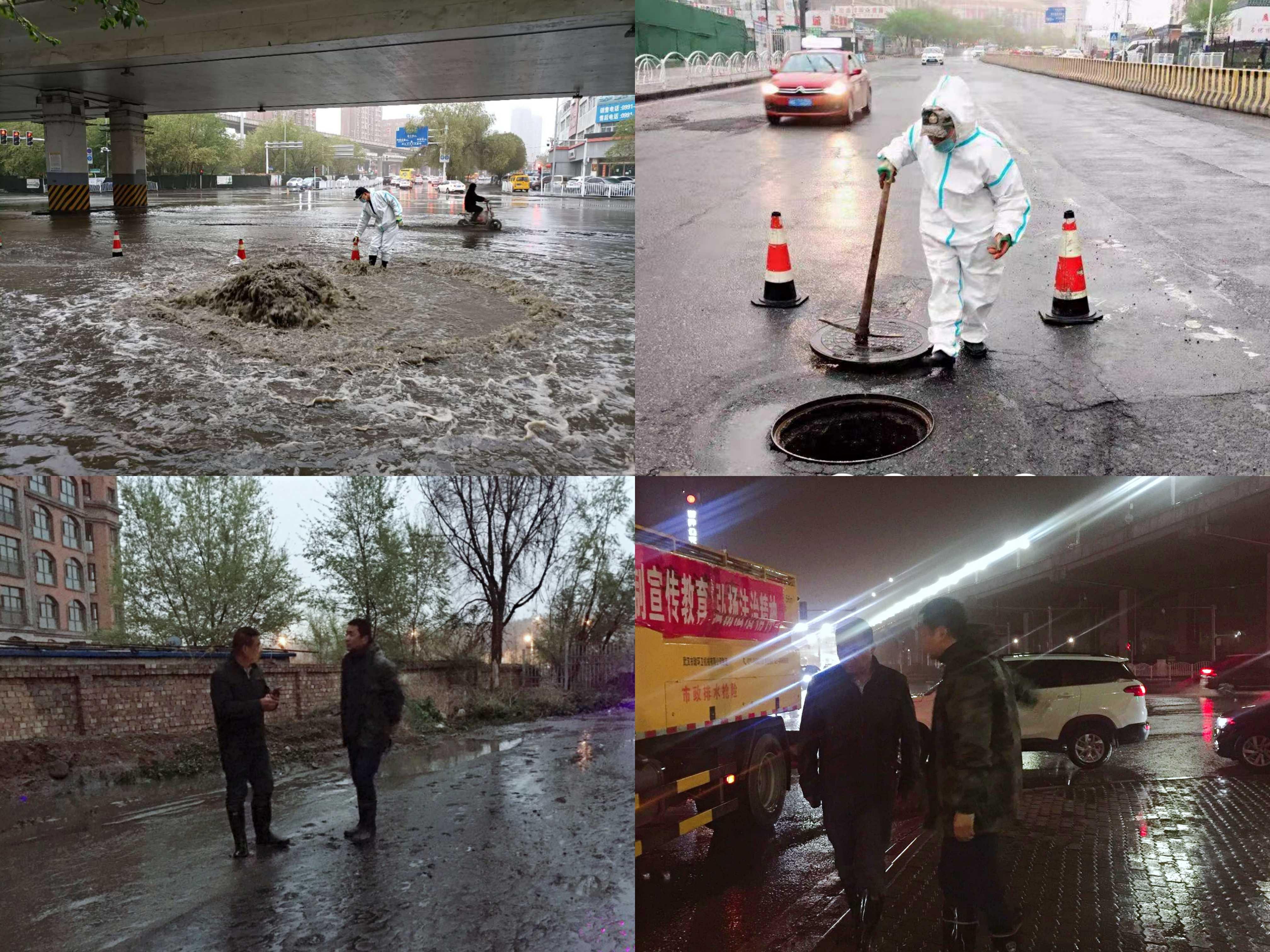 下午17点,光临乌鲁木齐首府的雨水让排水人投身工作待命防洪,值守在冒溢点和易发故障管线处。随着育新巷、河南西路、通安南路、四平路、苏州路与阿勒泰路交会处等地陆续出现冒溢情况,天山区、水区、沙区、经开区排水公司迅速出动人员车辆展开处置;乌鲁木齐水业集团排水公司党支部书记、经理孙波在微信群中实时部署、关注防洪情况,并鼓舞坚守在岗位“为人民服务”的排水职工;党政办公室及时启封各区特种车辆投入防洪使用;生产设施管理部定时向集团公司上报人员、车辆、冒溢处置等防洪情况,一切应急防洪工作都在各部门通力配合下有条不紊地进行着。