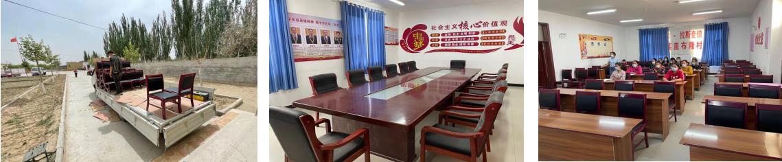 和田玉泉水务有限责任公司董事长张立新同志在调研中发现托万其盖布隆村国语教室、妇女之家、会议室凳子椅子坏的,影响学员听课和日常工作。了解这一情况后,和田玉泉水务有限责任公司董事会高度重视,为托万其盖布隆村出资购置椅子60把、马头椅14把、书柜1个、书架2个、更换蹲便器3个和厨房用品共计57000元,进一步改善村委办公条件和驻村工作队员生活环境,与村委凝心聚力,聚焦总目标,服务好群众。