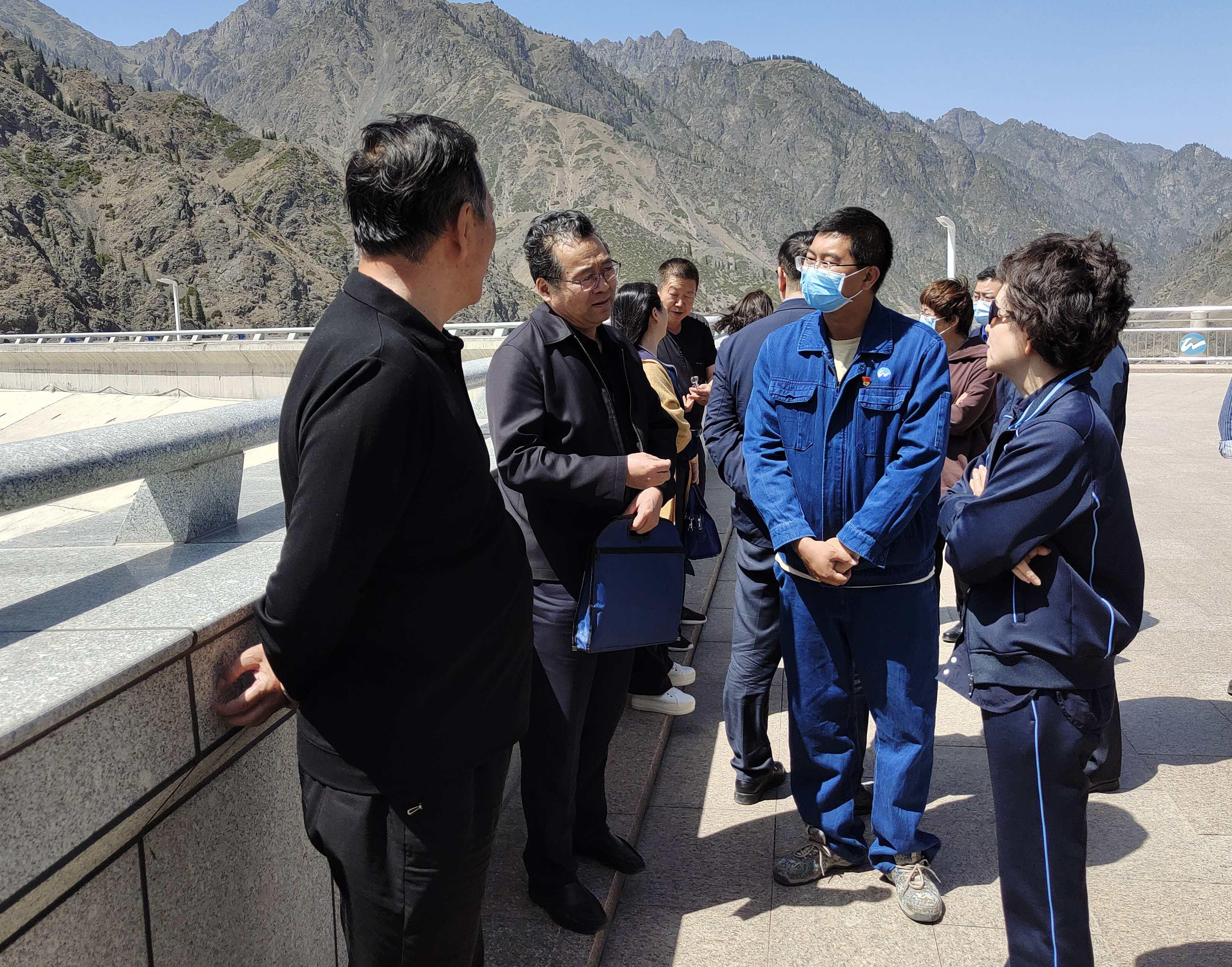 视察组一行来到水库大坝,对主要水工建筑物及周围库区环境进行实地察看。乌鲁木齐水业集团大西沟水库管理站党支部副书记、副站长孙阳平就水库基本情况、生产运行状况、水质监测、水环境保护措施、水源地监控等方面工作进行详细汇报,并对视察组提出问题一一进行了解答。