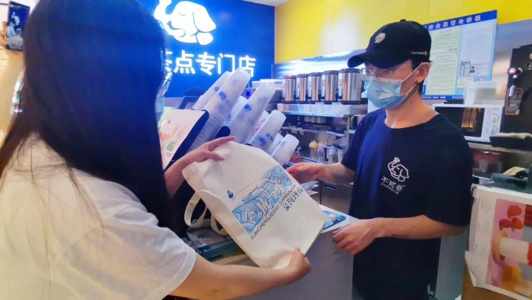 活动过程中,节水志愿者服务队前往餐饮店、奶茶店、大型商超等用水量较多的店铺进行节水宣传,提醒商户管理人员不管是从主观意识上还是客观设备上都要节约用水,倡导使用节水设施,培养节水理念。经过走访,发现商圈内商户的节水理念相对较强,据奶茶店工作人员介绍,他们的制冰机并不是全时段开启的,通常根据节假日客流量的不同制定相关目标数量,按需制取,防止制作过多冰块而浪费水、电资源。