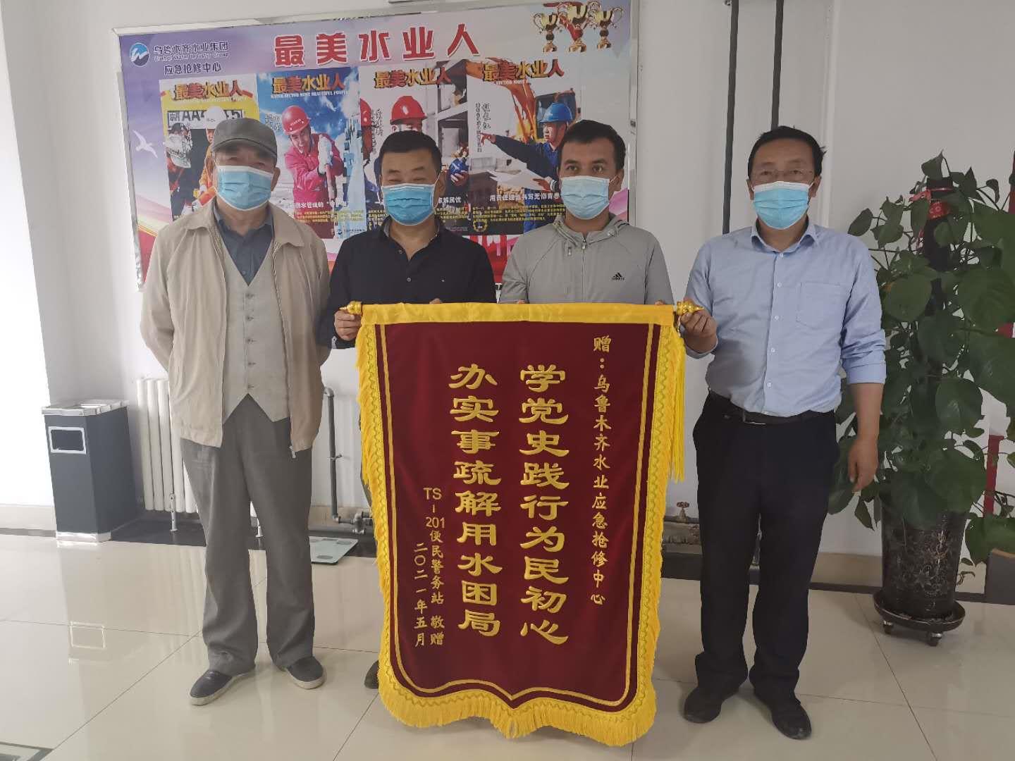 乌鲁木齐水业集团应急抢修中心 高效服务助通水 真诚致谢送锦旗