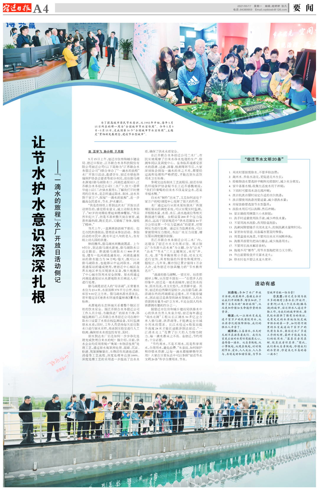 标题:让节水护水意识深深扎根——“一滴水的旅程”水厂开放日活动侧记