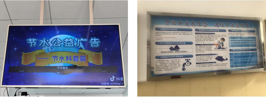 公司制作了两期内容丰富的宣传栏,分别张贴于办公楼和职工生活区,让干部职工、社区群众通过阅览宣传栏,充分了解到水资源的重要性和节约用水的重大意义。公司利用微信公众服务号、支付宝生活号两个新媒体平台,向社会大众发布了《节约用水倡议书》,同时印制纸质倡议书1000份,摆放在收费大厅供用水户取阅,旨在通过广泛宣传倡议,引导大家共同参与到节水工作中来,形成节约用水、合理用水的良好风尚。利用收费大厅LED电子屏、电视机,公司还设置了宣传标语和节水公益广告,通过滚动播放的方式,强化来往用水户的节约用水意识。