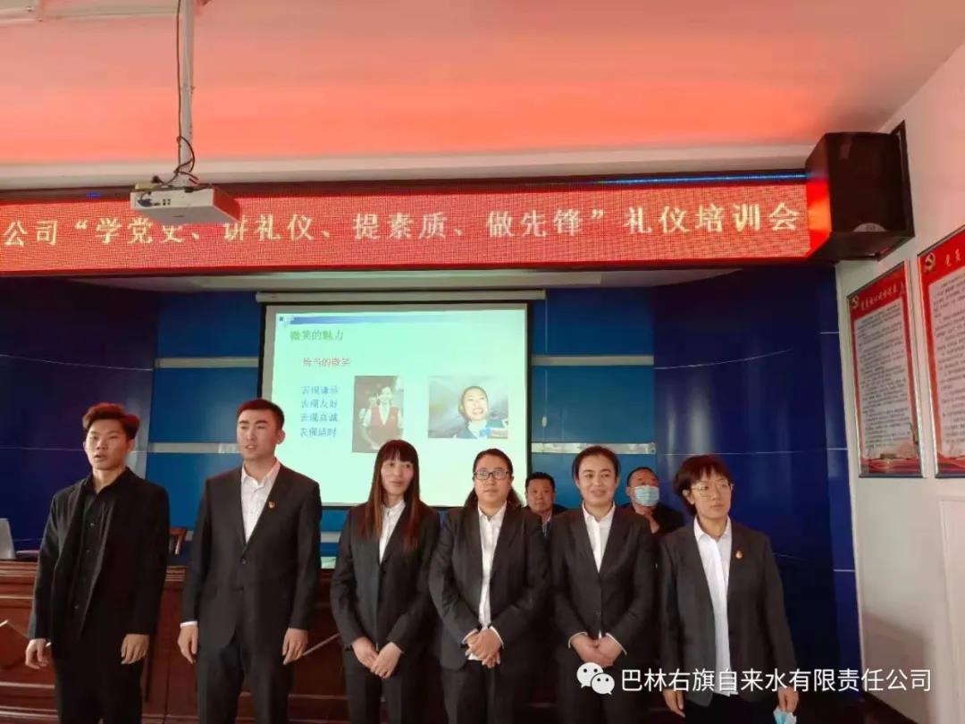 通过三个小时的礼仪培训,全体员工们一致认为上了一堂生动有趣的课。大家学有所获,受益匪浅。不仅增长了礼仪知识,还提高了自己的综合素质。深刻地感悟到礼仪直接影响人际关系,影响事业的成败。真正做到内强个人素质,外塑公司形象。全体员工凝心聚力将以更加务实的作风,朝气蓬勃的精神面貌,以更加文明的礼仪,更加规范的行为,投入到供水工作中。在巴林右旗自来水有限责任公司全体员工的共同努力下,切实做到全心全意服务于广大用水户,提升优化营商环境,为巴林右旗的经济发展建设保驾护航。真正做学史力行的供水人。以优异的成绩为伟大的中国共产党建党100周年献礼。