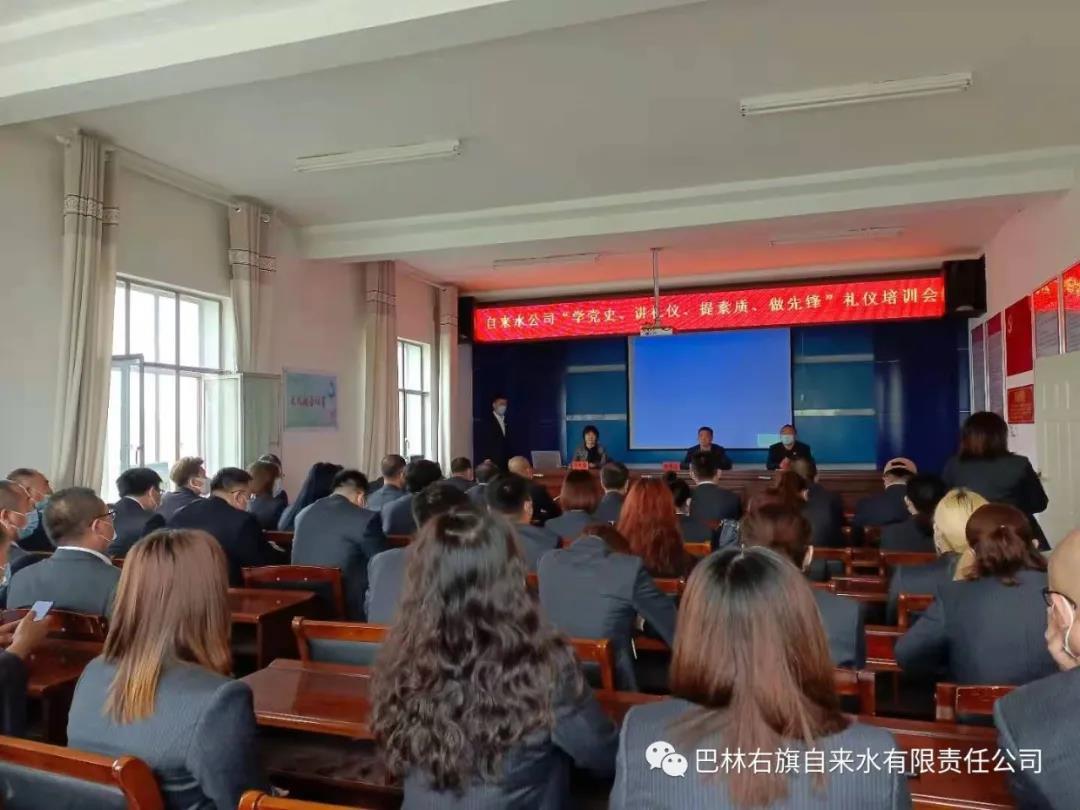 为了深入贯彻“放管服”改革优化营商环境,营造“亲、清、暖”的营商氛围。为了提高企业员工素质,推动公司高质量的快速健康发展,5月14日上午,巴林右旗自来水有限责任公司开展“以学党史、讲礼仪、提素质、做先锋”为主题的培训会。参加会议的全体员工有70余人,会议由董事长主持。