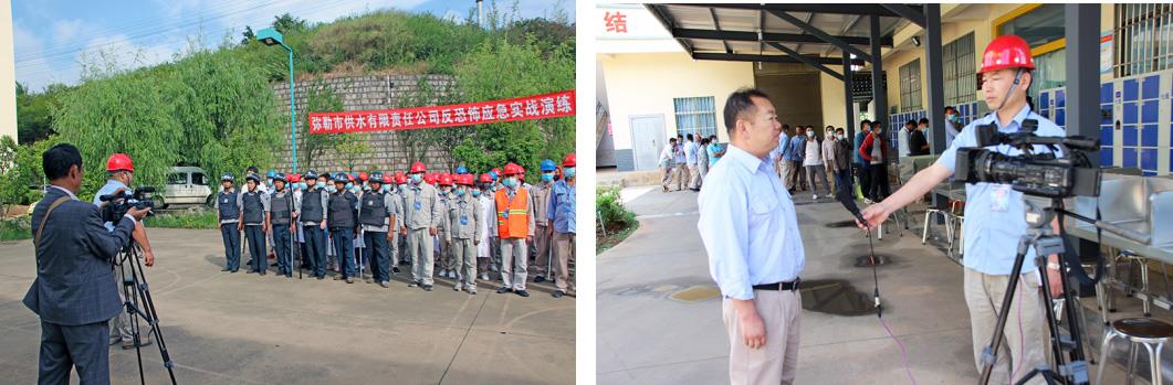 为了加强公司反恐安全宣传教育力度,建立有效的防范机制,提高全体员工的安全防范意识,有效预防和遏制反恐安全事故的发生,近日,按照反恐应急预案的部署,弥勒市供水公司组织100余人在办公区及生产厂区开展“2021年反恐应急实战演练”,弥勒电视台记者到场采访报道。