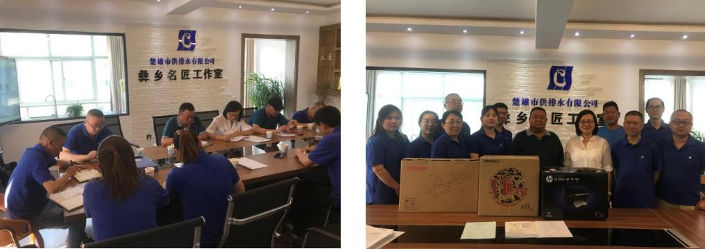 在会上,彝乡名匠高廷杨同志在听取了相关工作汇报后表示,作为一名供水人,要时时刻刻保持勤奋好学的精神,干一行,爱一行。匠心,首先是虚心。虚以待物,宽以待人。只有保持谦虚的心,才能有足够的心理空间去发现世界、理解世界。匠心是恒心,坚韧不拔、锲而不舍的毅力和活到老、学到老的恒心,不断追求的执著心 ;匠心是细心,细微之处彰显非凡品质,这就是匠心。师带徒是工作室的核心工作,传帮带是对专业技能的传授,更是供排水文化的传承。作为前辈,他一直在激励并要求我们年轻的给排水人,工作上要勤学专业知识,磨炼实操技能,要虚心向前辈们讨教。发扬楚水精神精神,为楚雄的供排水事业不懈奋斗。