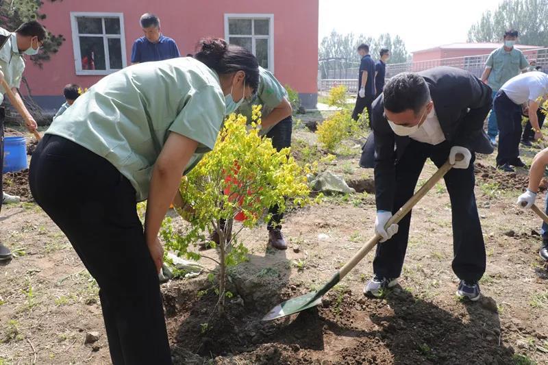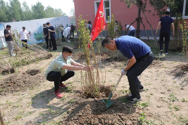 植树现场,在党委书记、总裁朴庸健的带领下,大家齐心协力,密切配合,三五成群、挥锹铲土、扶苗填坑、培土压实、踩土定植,个个干劲十足,热火朝天。经过一番劳动,共栽种榆叶梅、金叶榆等树苗100余株,原本空荡的土地上生机勃勃,形成一道绿色的风景线。