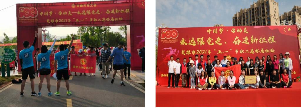 为庆祝建党100周年,积极推进健康中国、健康楚雄、健康单位建设,引导广大干部职工健康生活,积极锻炼,楚雄市供排水公司工会号召广大职工参与楚雄市总工会组织的,主题为“中国梦 劳动美——永远跟党走,奋进新征程”楚雄市2021年“五一”节职工迷你马拉松比赛,赛程为富有意义的7.01公里。公司领导高度重视,积极组织一支职工代表队参赛,最终以优异成绩、团结协助的精神风貌,被市总工会表彰为“优秀组织奖”。