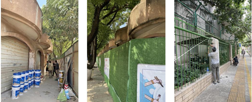 为如期完成创文整改工作,公司于5月8日开始对环山路铺面临街人行道进行围挡封闭施工。目前已完成环山路临街房屋屋顶堆积树叶清理、雨落管更换,一水厂厂区内老旧房屋、废弃水塔拆除及厂区透视围栏粉刷工作。