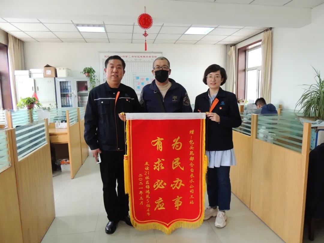 为深入推进我为群众办实事活动,促进供水服务提升,公司各级党组织围绕“我为群众办实事”的主题开展大讨论活动,让广大党员在换位思考中感悟初心使命,坚定人民立场。如广大党员为自由路办事处学府社区老年活动中心开通绿色通道接水报装,并义务加装水表,受到老年人的好评;为牡丹园绿化用水施工提供技术指导;及时维修了铁西土二楼三区四栋、五栋五户居民供水管网;为正在实施分户改造的化工研究所74户居民免费提供4万余元的水表及锁闭阀;创新服务方式,制作便民“两卡”暨“供水服务明白卡”、“供水服务联络卡”,实行“三必告知”,使我为群众办实事得到深化。