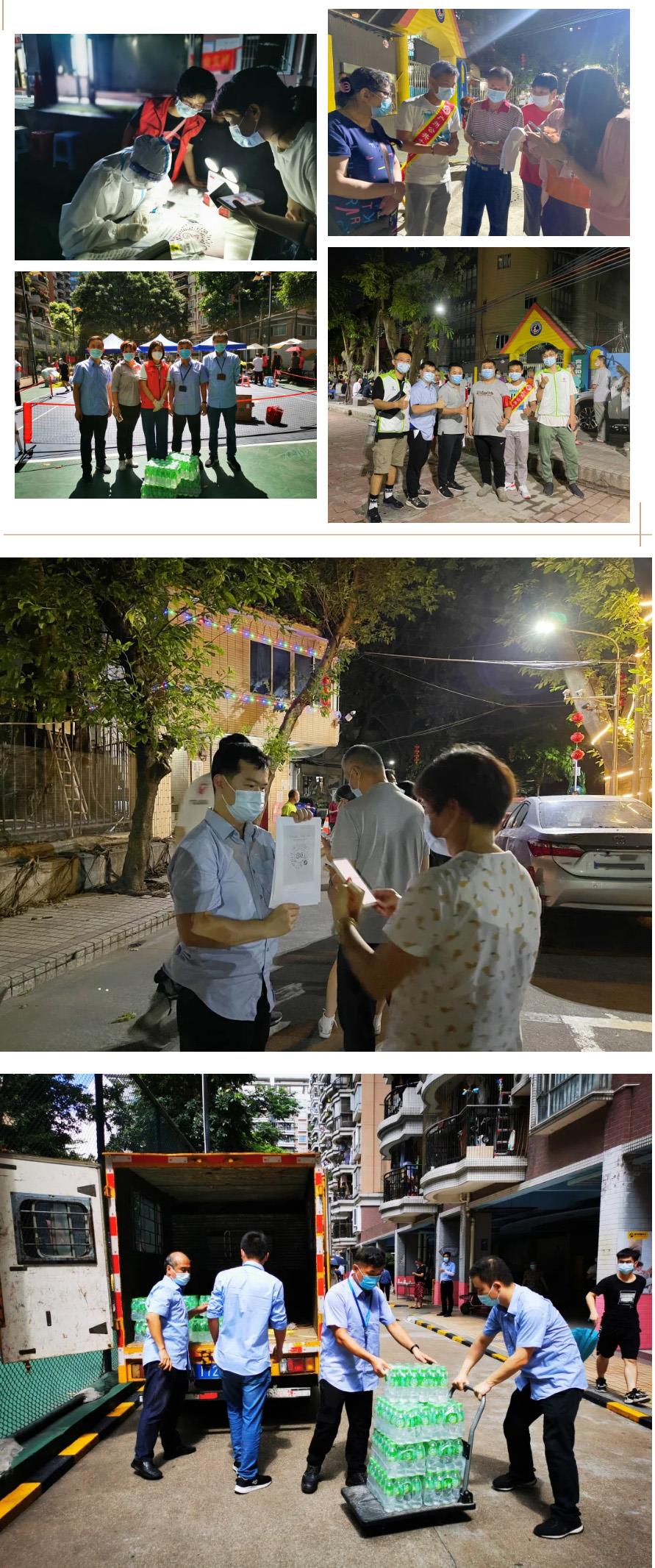 5月26-27日,荔湾区连夜开展全员核酸检测,各核酸检测点均排起了长队,现场除了连夜奋战、全副武装的医务人员,不乏众多志愿者的身影。广州自来水公司充分发挥党员干部的先锋模范作用,坚守为民办事的初心使命,组成广水党员先锋队加入抗疫志愿队伍,积极奔赴各社区,指导社区居民正确填写个人防疫信息,主动为医护人员和排队群众送去饮用水和风扇等物资,协助落实防疫和服务工作,彰显国企担当。先锋队员们表示:“虽然辛苦,但作为一名党员,是义不容辞的责任,能为社会抗疫贡献绵薄之力是一种光荣”。