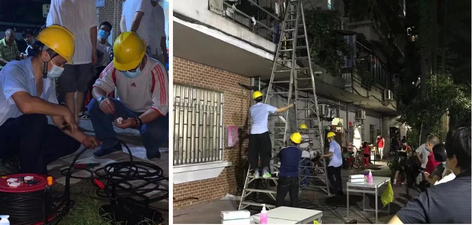5月26-27日,荔湾区和平新村社区突遇停电,临时核酸检测点的用电和照明设施无法得到保障。广州水投自来水公司迅速派出青年应急小分队赶赴和平新村社区的临时核酸检测点,全力帮助居委会搭建临时用电和照明设备,保障社区核酸检测工作顺利开展。