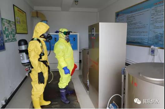 在一水厂加氯设备间模拟二氧化氯泄露应急处置,组织干部职工处理二氧化氯泄露事故,使干部职工熟练掌握二氧化氯发生器的操作规程,熟知制水生产中加氯的相关知识,保障城市供水生产安全。