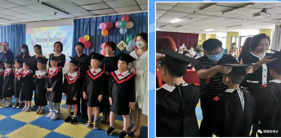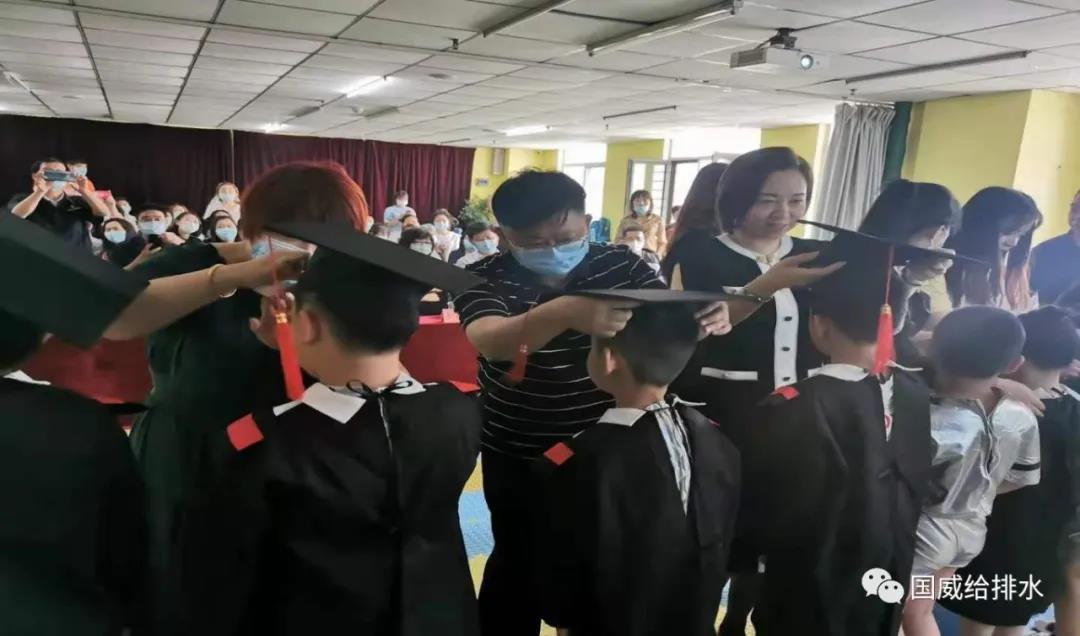 毕业典礼上,公司董事长刘永与其他爱心企业代表为毕业生穿学士服、戴学士帽、正衣冠,寓意孩子们在成长的道路上做一个正直善良的人。同时,希望孩子们长大以后能够成为国家之栋梁,做一个有担当、知感恩的人。