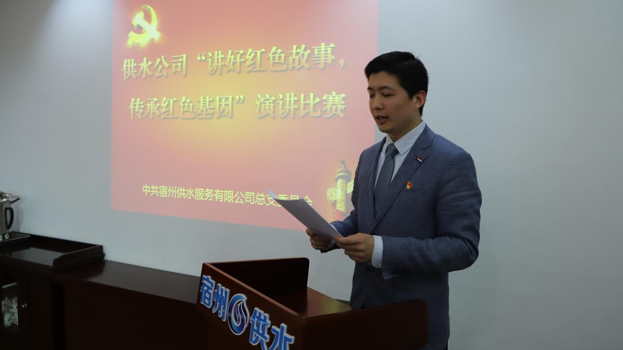 为认真学习贯彻习近平新时代中国特色社会主义思想,提升基层党组织凝聚力、战斗力,带动党员干部从党史中学出情感、学出认同、学出信念,引导党员干部传承红色基因、担当时代责任,宿州供水公司于4月13日下午开展了 “讲好红色故事 传承红色基因”党史教育演讲比赛。
